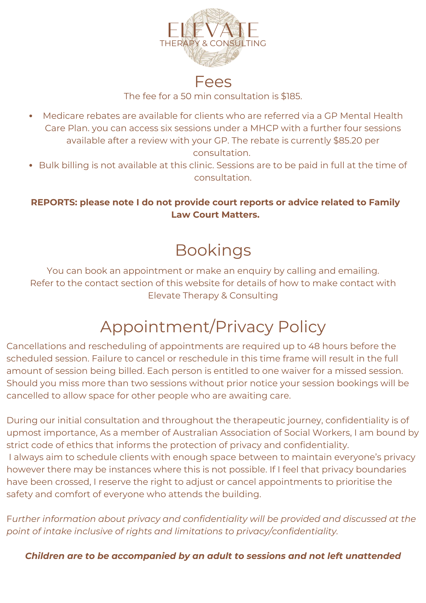 Fees & Bookings